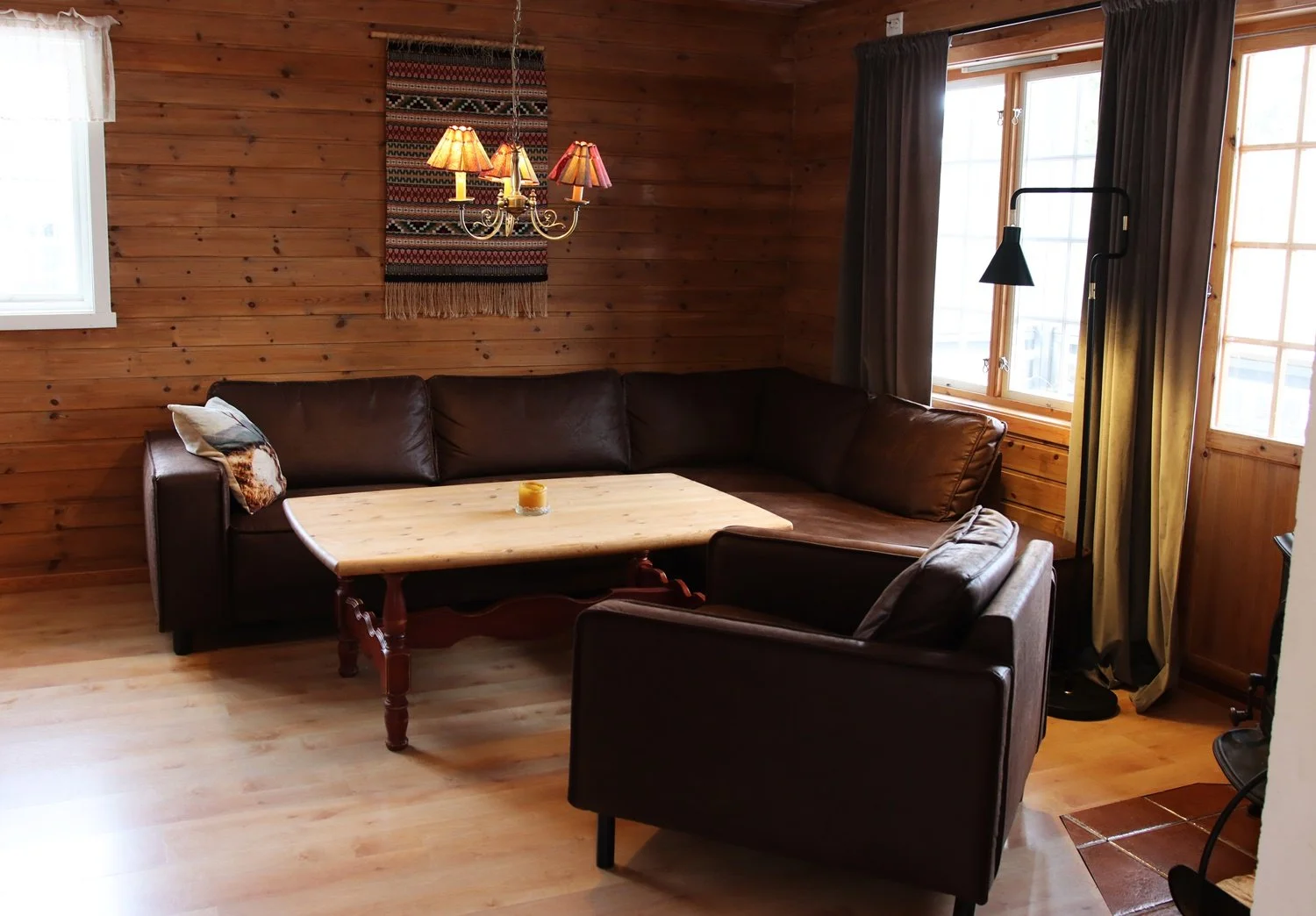 There is a veranda in first and second floor. From the veranda and living room you can see the valley and the montains. This cabin is the twin to the cabin “Piliniitty” and is located next to the hot tub and barbeque hut.